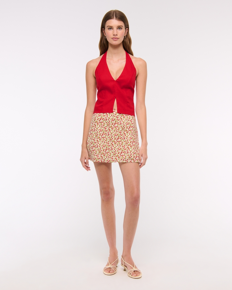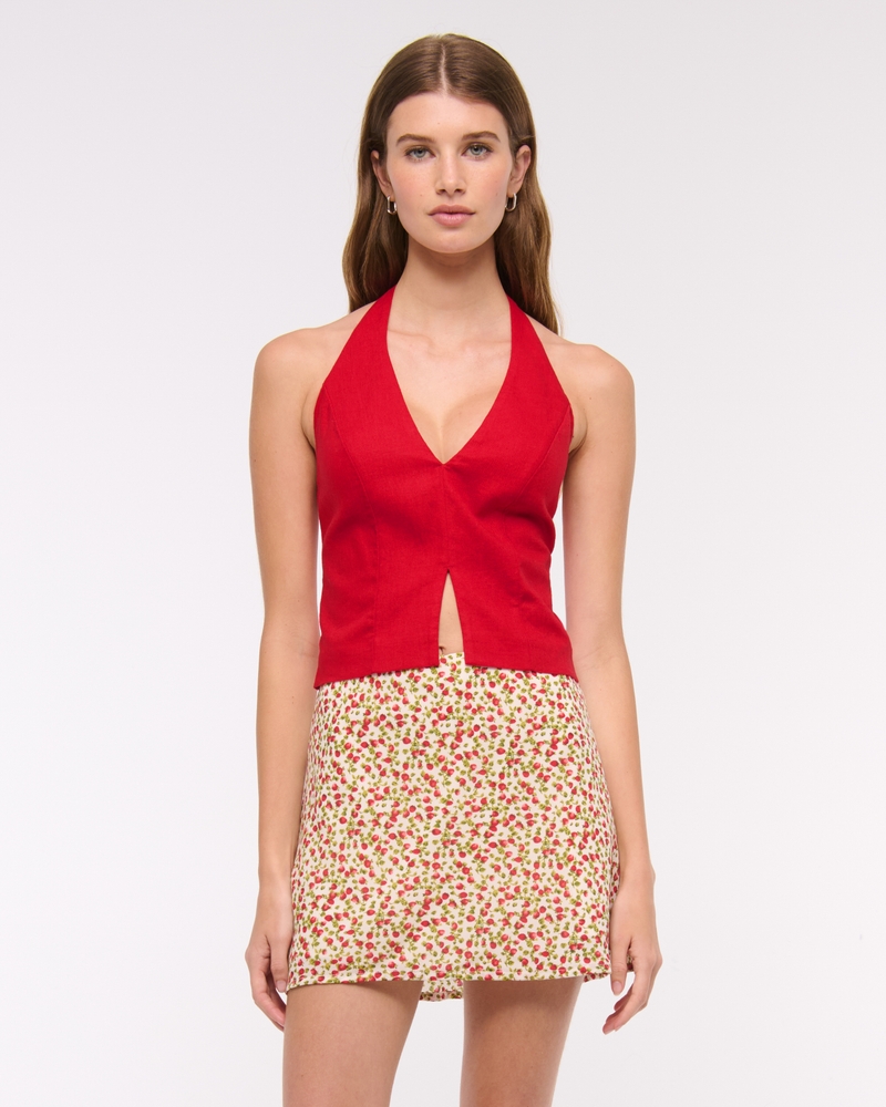 Linen-Blend Tailored Halter Vest