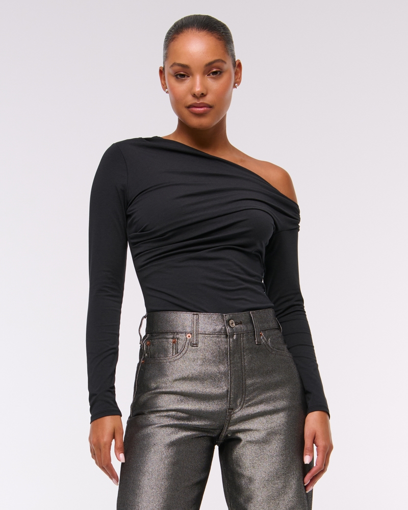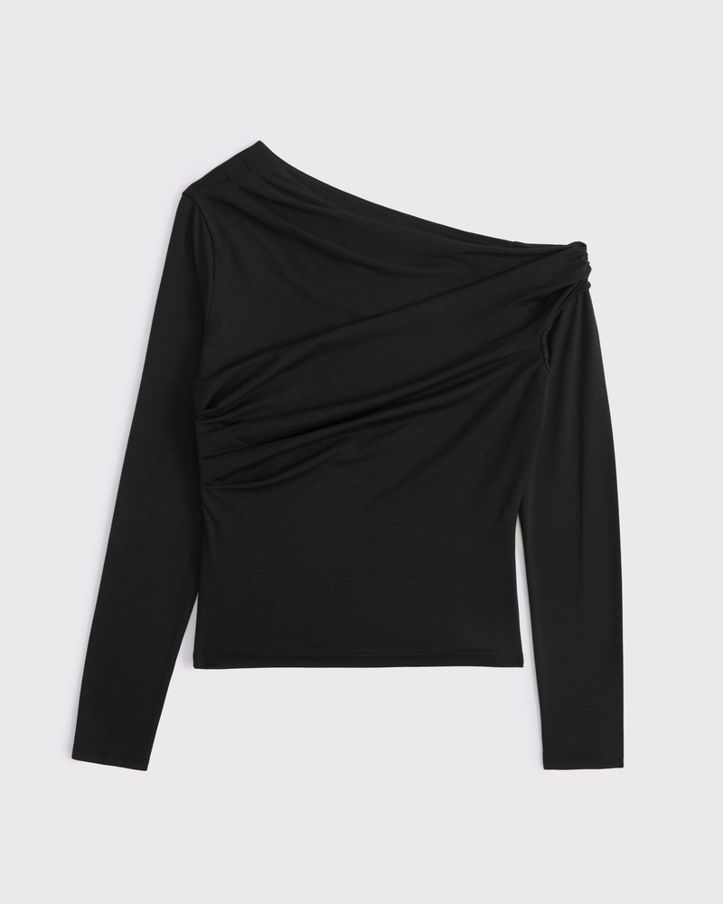 Slim-fitting long-sleeve top in our softAF cotton-modal fabric, featuring an asymmetrical neckline, ruching details along the bodice and draping detail on the shoulders. Imported.