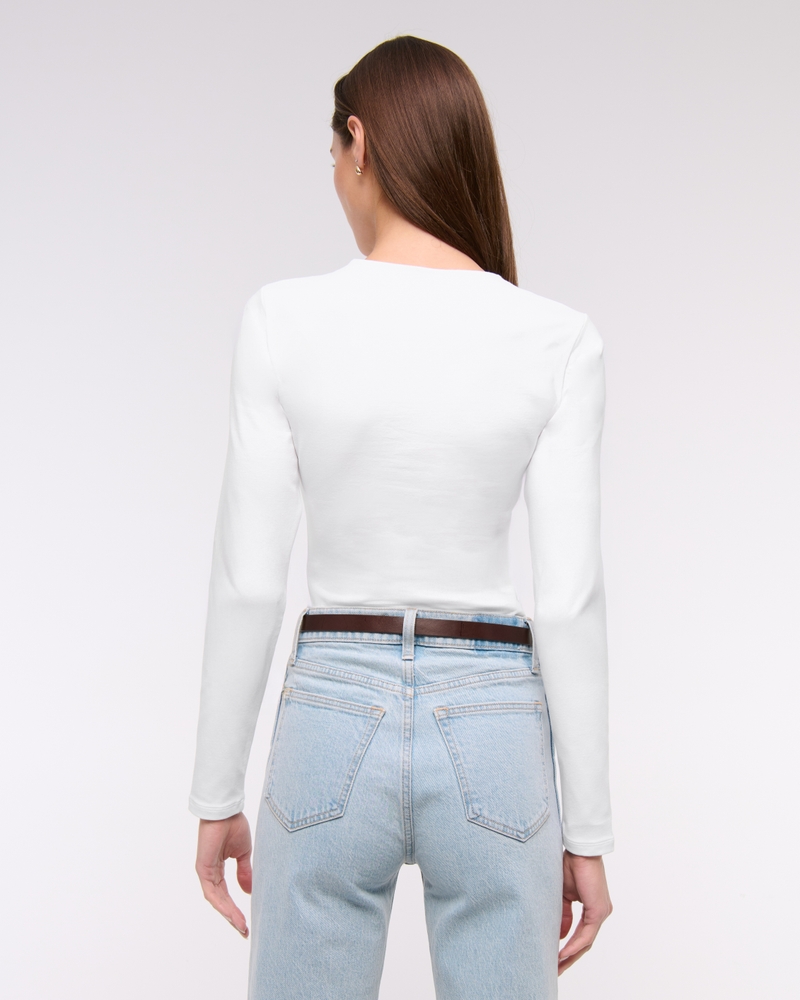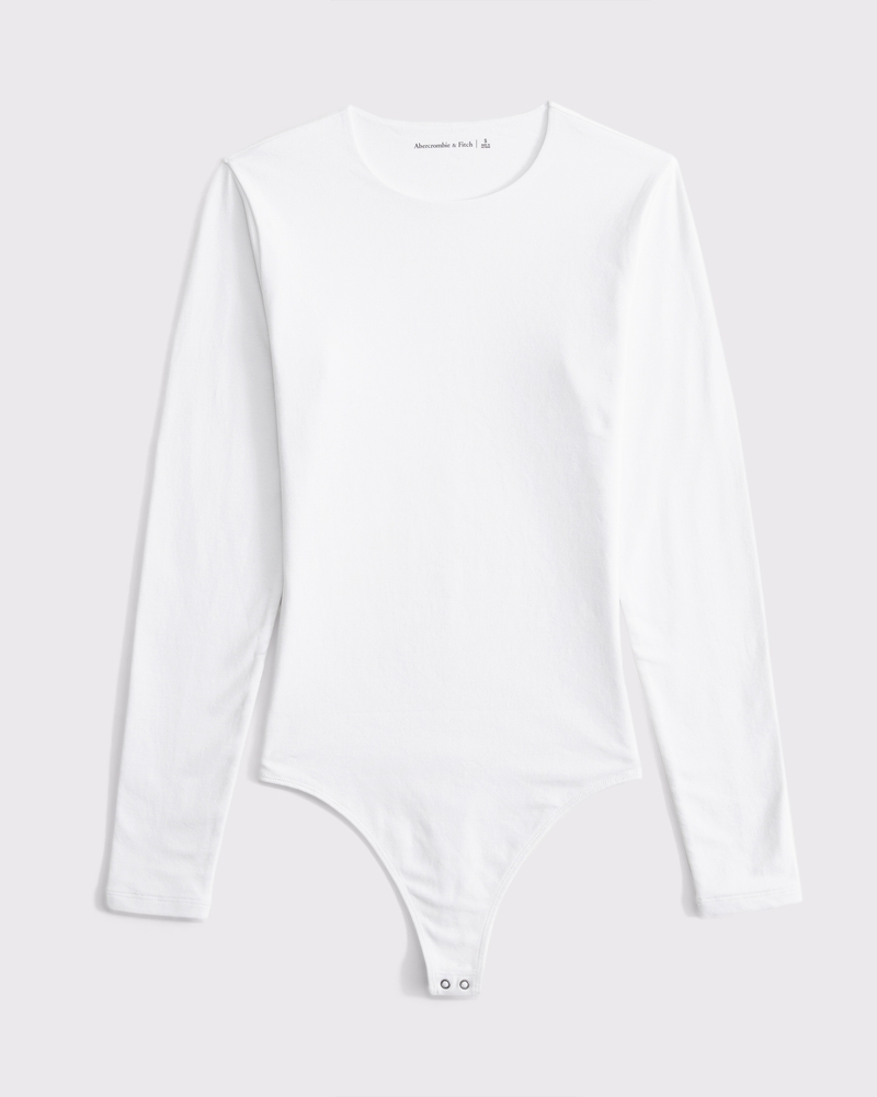 Long-Sleeve Cotton-Blend Seamless Fabric Crew Bodysuit