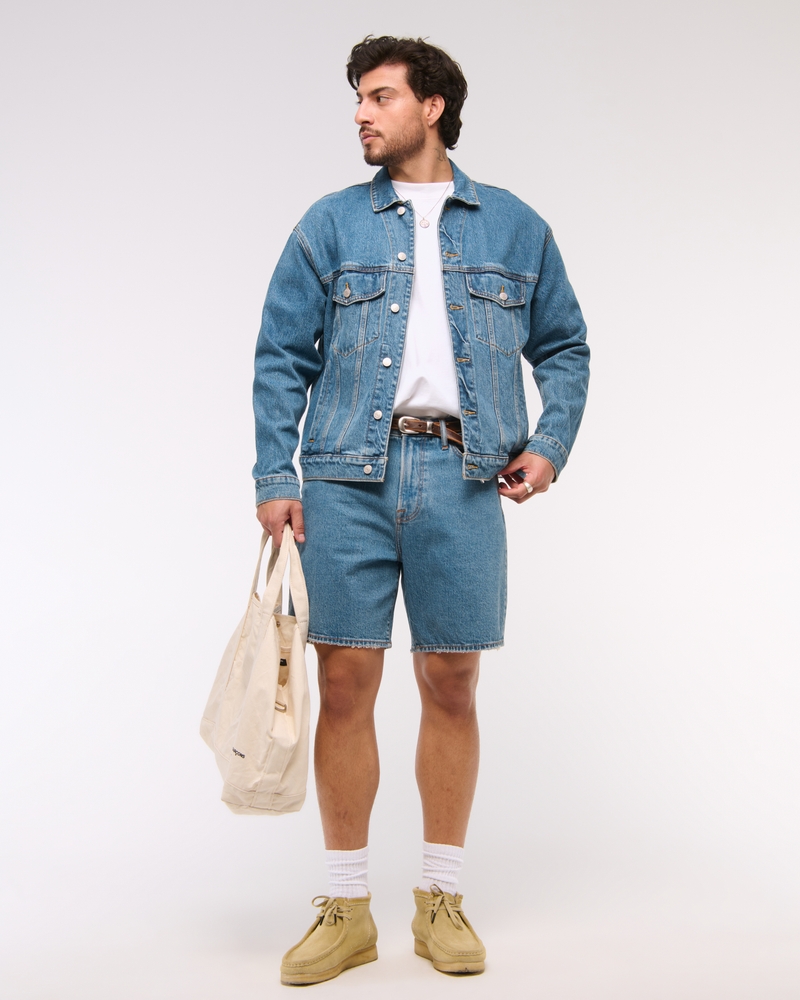 Our 9 inch (23 cm) denim shorts in a loose, relaxed fit and our 100% cotton lightweight garment dye denim fabric, with a black wash and clean hem. Imported.