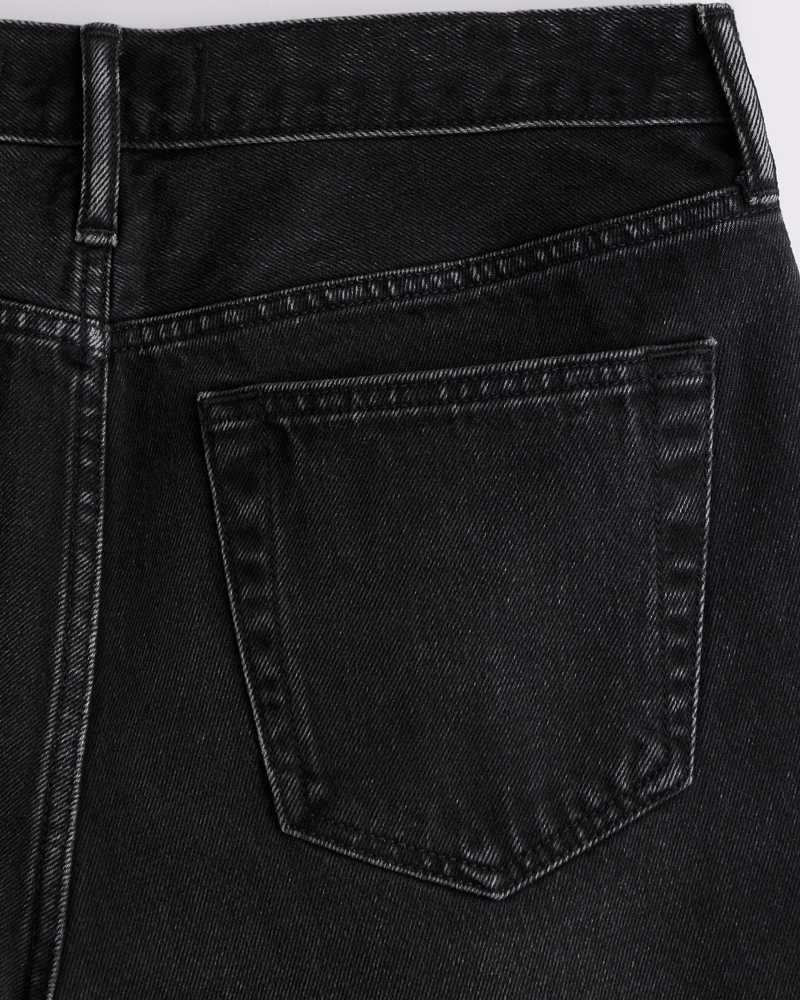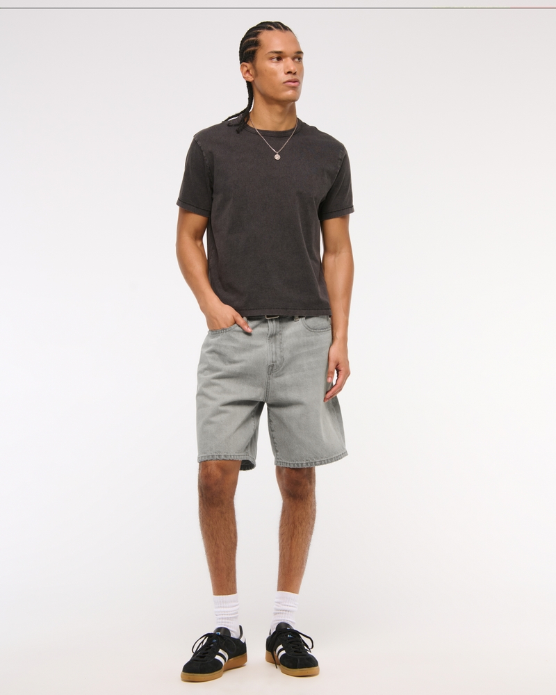 Our 9 inch (23 cm) denim shorts in a loose, relaxed fit and our 100% cotton lightweight garment dye denim fabric, with a black wash and clean hem. Imported.
