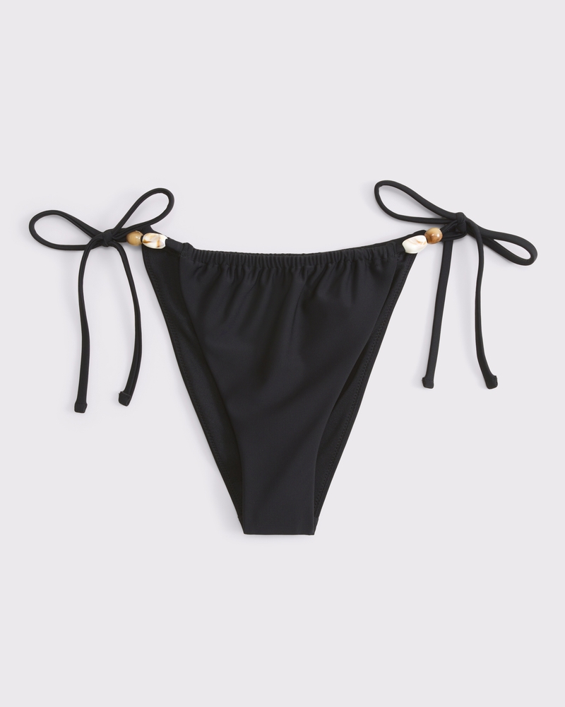 Our high-leg cheeky coverage bottoms in our core nylon fabric and low rise fit, featuring adjustable tie straps on the side, adjustable back coverage and on-trend gold bead details. Imported.