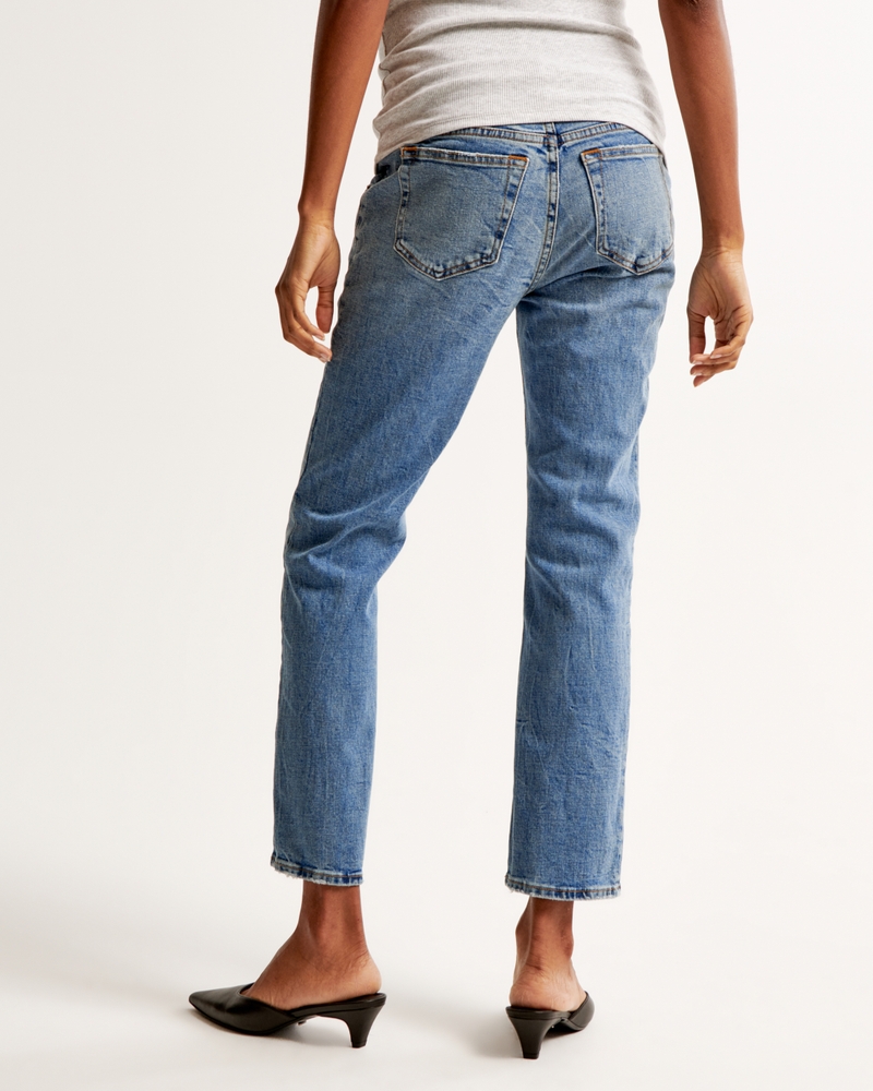 Our maternity denim in our classic ankle straight silhouette, designed for both classic and Curve Love body types. This fit features a medium wash, an elastic belly band for your baby bump, functional pockets and clean hem. We recommend purchasing your pre-pregnancy size in our maternity denim.