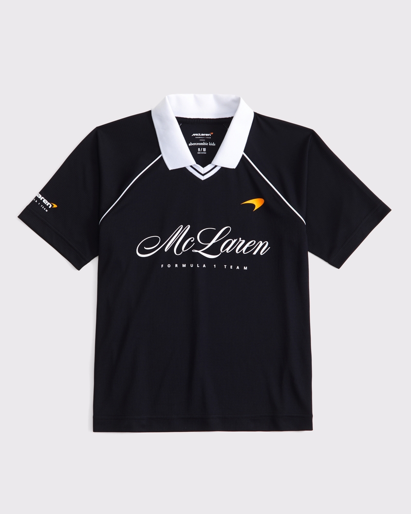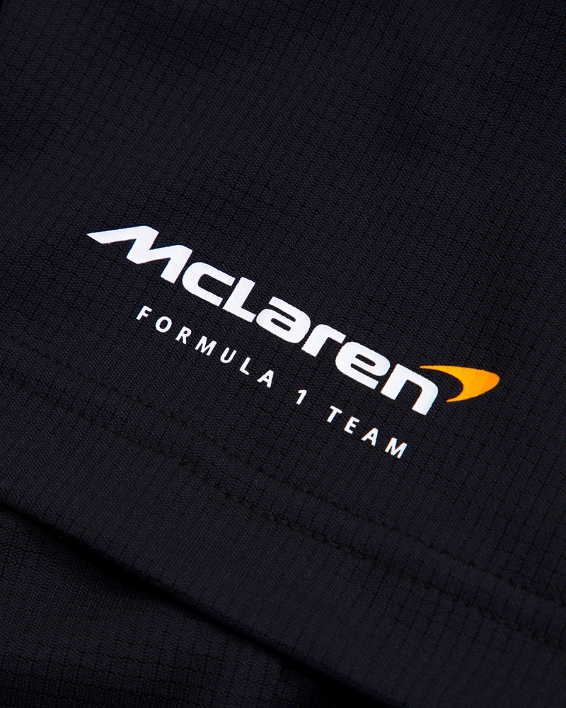 Comfy short-sleeve active tee in our synthetic fabric with sweat-wicking and breathable properties. Features McLaren-inspired graphic details at chest and sleeve, tipping detail at the neckline, ribbed collar, piping detail on sleeves and v-neckline. Imported.