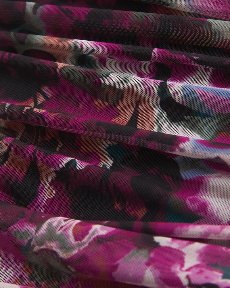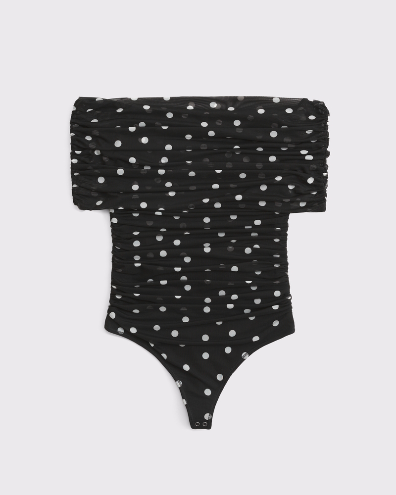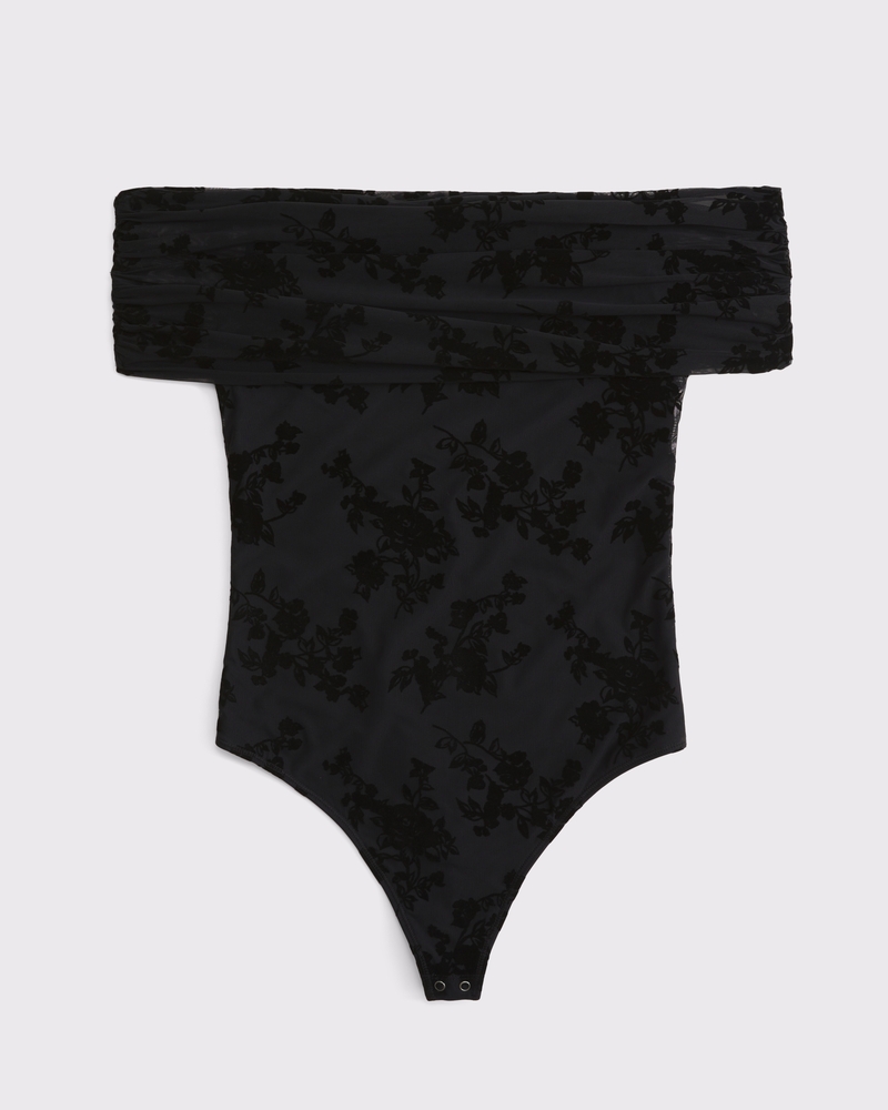 Slim-fitting bodysuit in our soft mesh fabric, featuring an off-the-shoulder foldover neckline, ruching details along the bodice and two-snap bottom closure. Imported.
