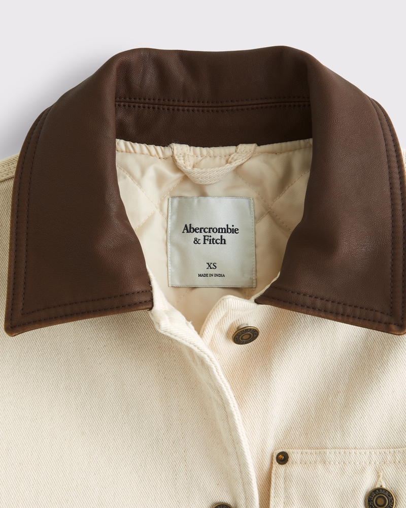Our new jacket in a twill fabric and classic workwear-style silhouette, featuring a contrast collar, button-up front, light fill, quilted interior lining and pockets throughout. Imported.