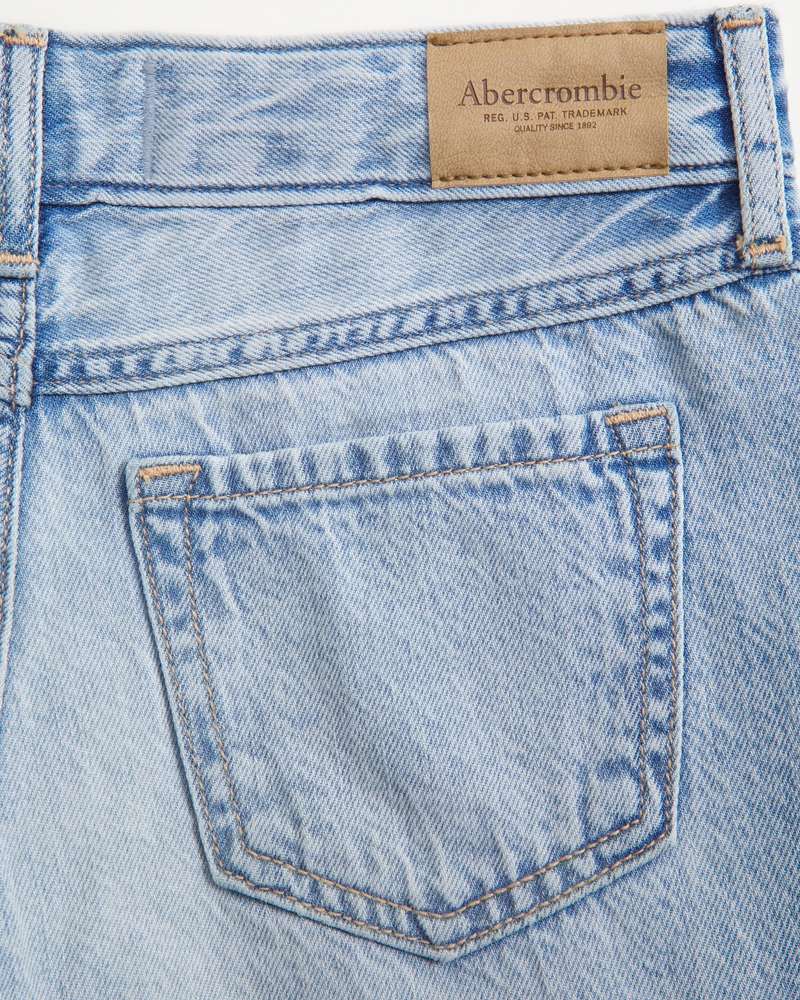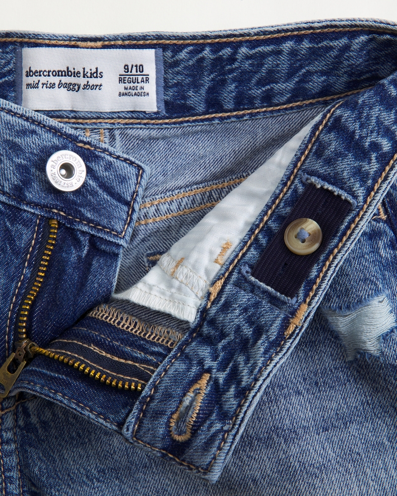 Mid rise shorts in a light wash with a baggy, relaxed fit throughout the leg, featuring a frayed hem, functional pockets and waistband adjusters in all sizes. Imported.