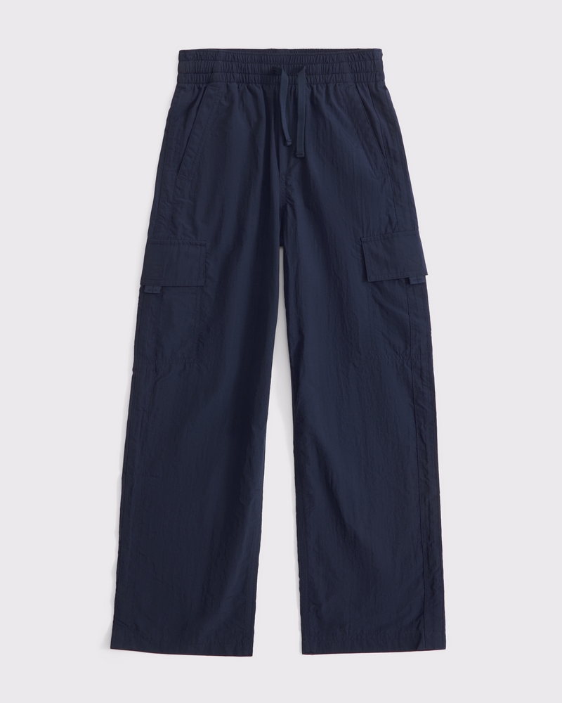 Comfortable pull-on style pants in a crinkle nylon fabric, with a baggy fit through the leg. Features on-trend cargo-style pockets, elasticated waistband, pockets and exterior drawcords. Imported.