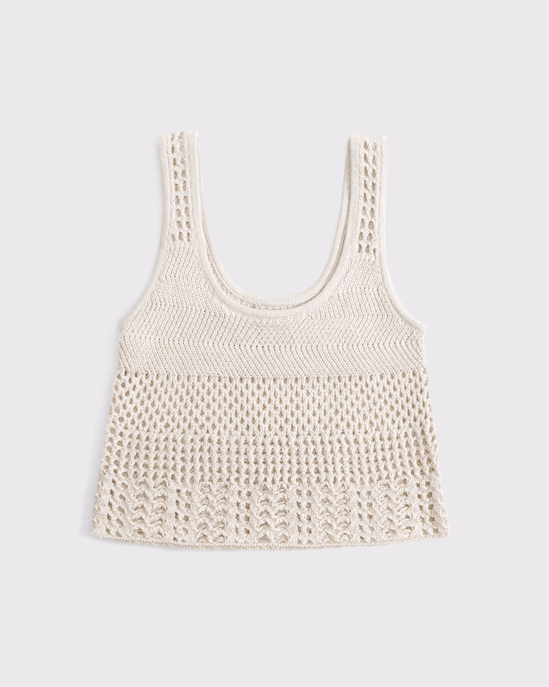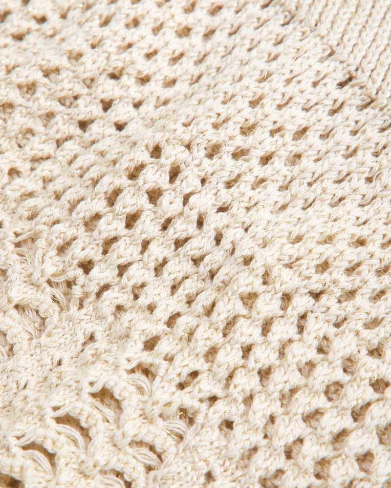Body-skimming short tank in our cotton-blend sweater yarn fabric, featuring a scoop neckline with gold lurex and mixed open-stitch details throughout. Pairs perfect with your favorite pair of jean shorts! Imported.
