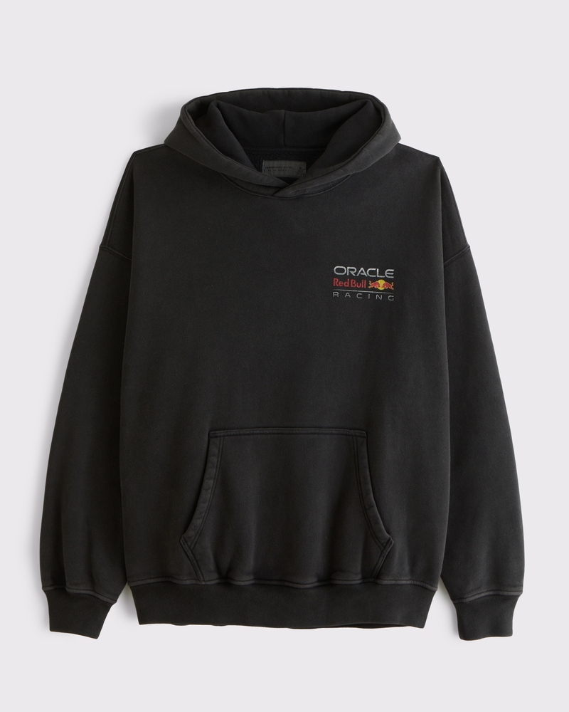 Classic popover hoodie in our softAF fleece fabric and oversized-fit silhouette, featuring Oracle Red Bull Racing graphic detail at left chest and back, front pouch pocket and banded hem and cuffs. Imported.