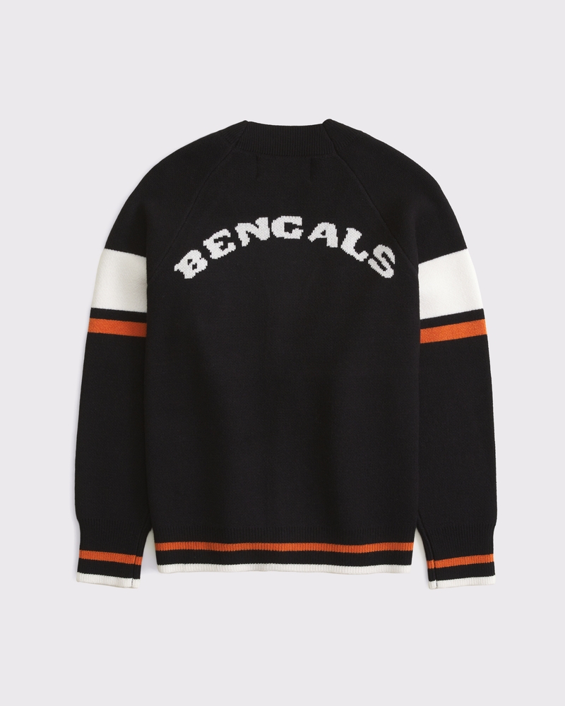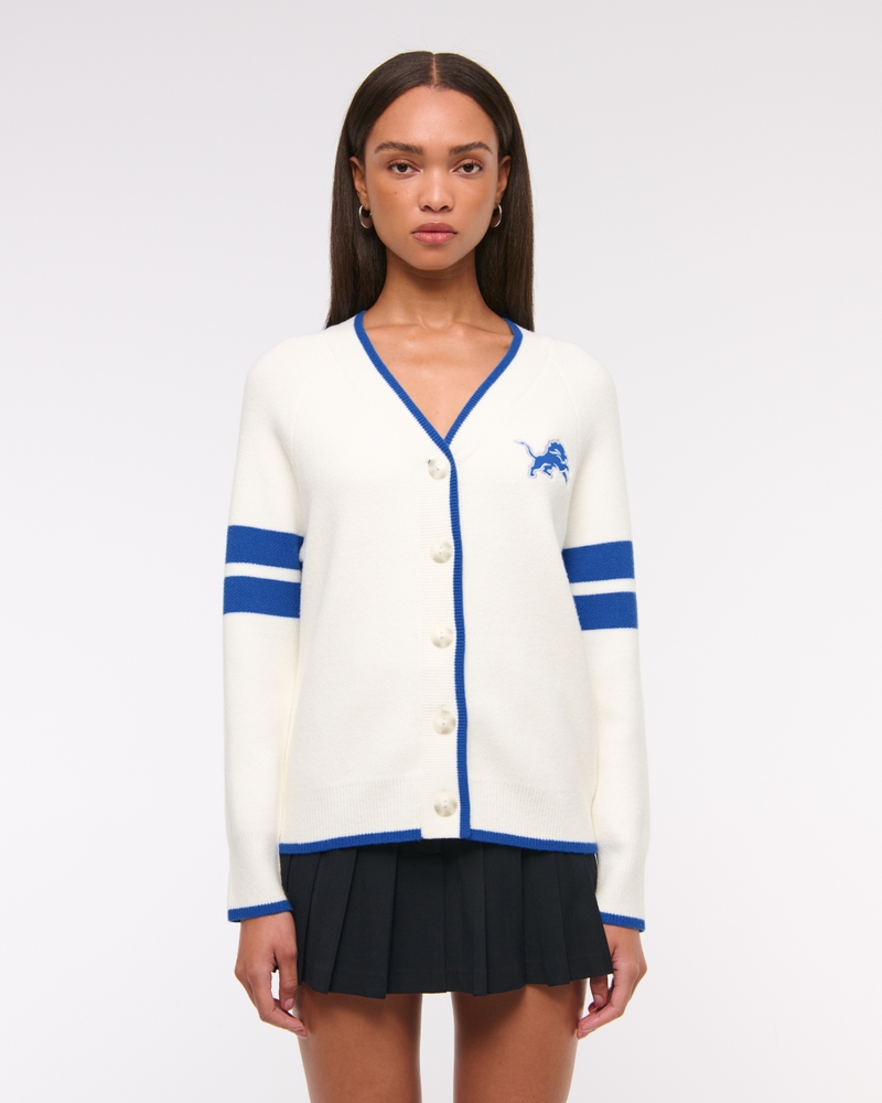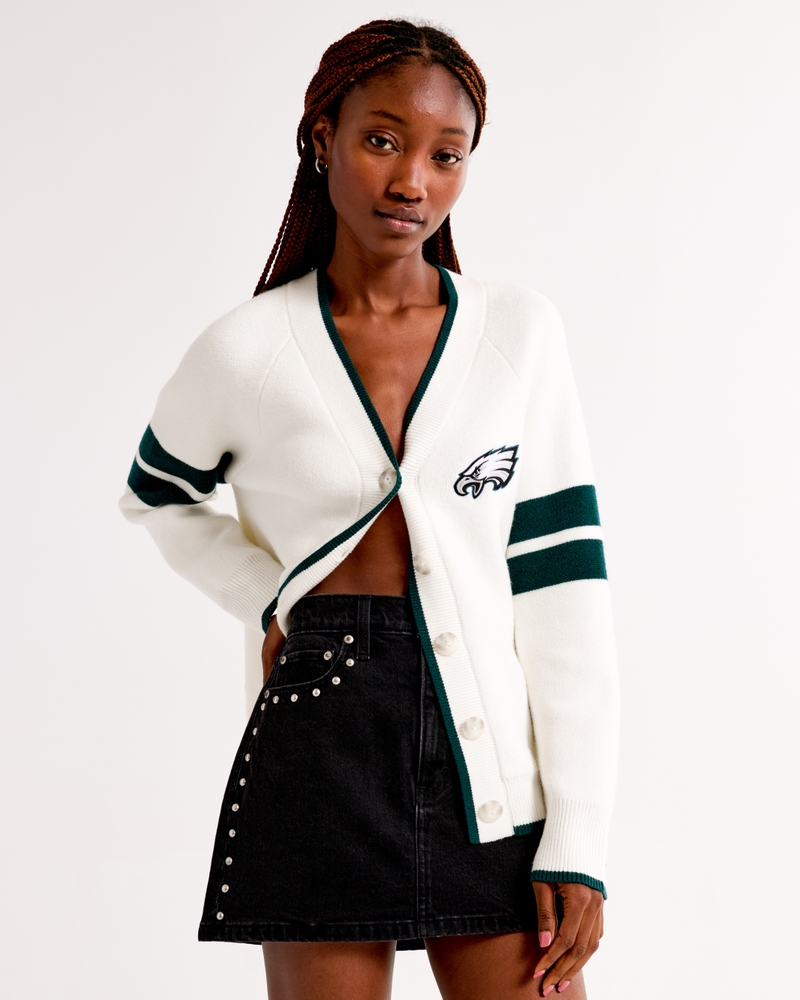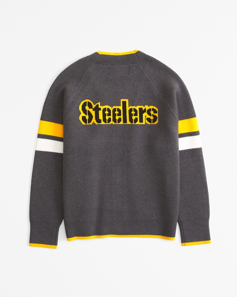 Easy-fitting cardigan in our super soft LuxeLoft fabric, featuring Pittsburgh Steelers-inspired graphic detail at left chest and back, button-up front and rib trims at the hem and cuffs. Pairs perfect with jeans or a mini skirt for your game day look!
