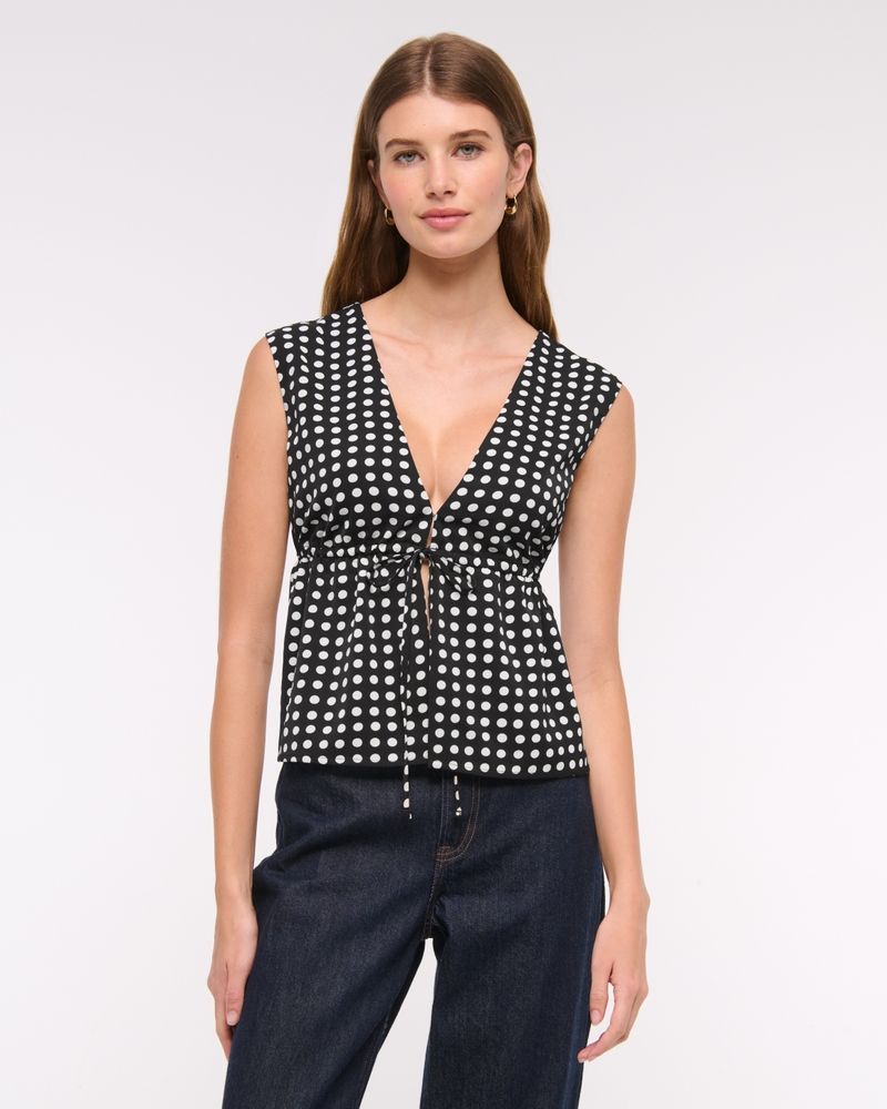 Flattering top in our soft rayon fabric, featuring plunging v-neckline and adjustable tie-front details. Imported.