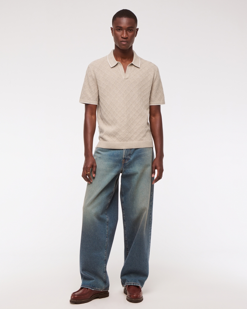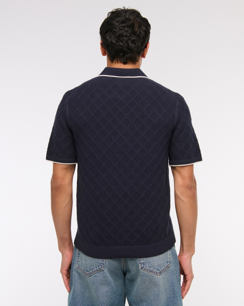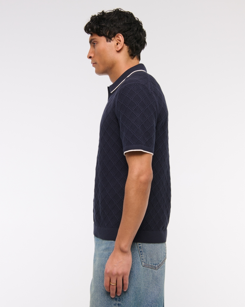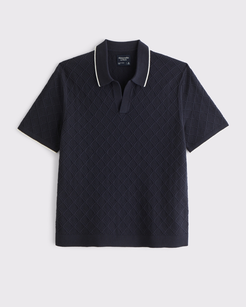 Lightweight short-sleeve sweater polo in our soft sweater-knit fabric and relaxed-fit silhouette, featuring prep-inspired tipping details, diamond-shaped stitching details throughout, no-button Johnny collar, left chest pocket and banded hem and cuffs. Imported.