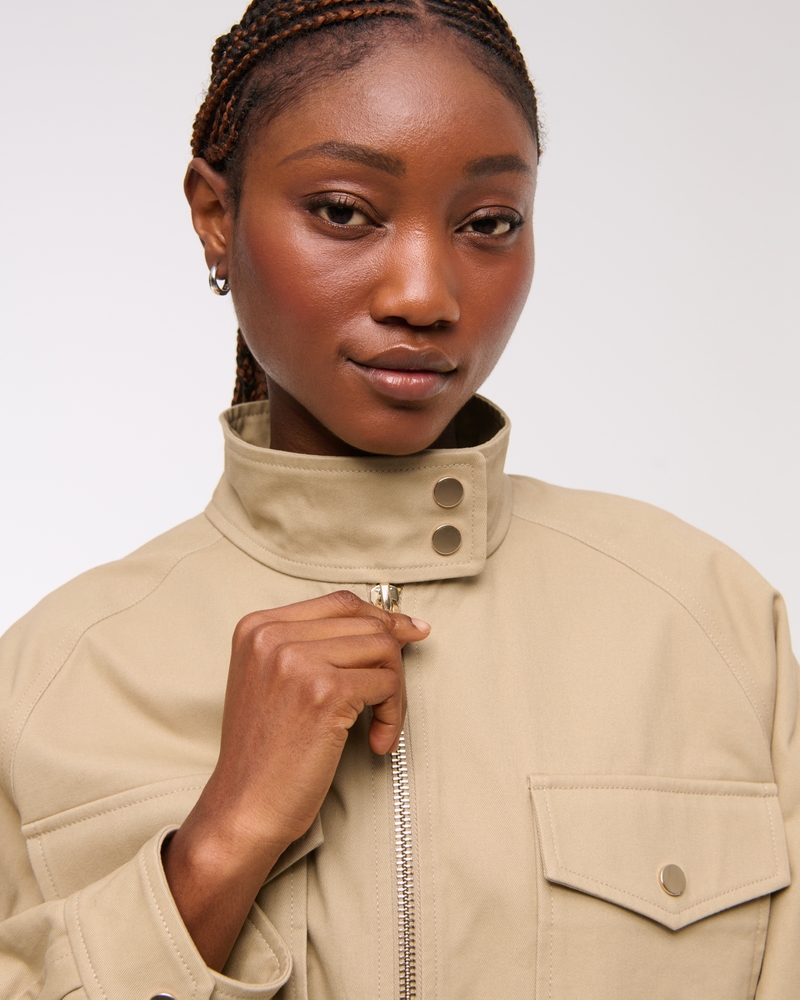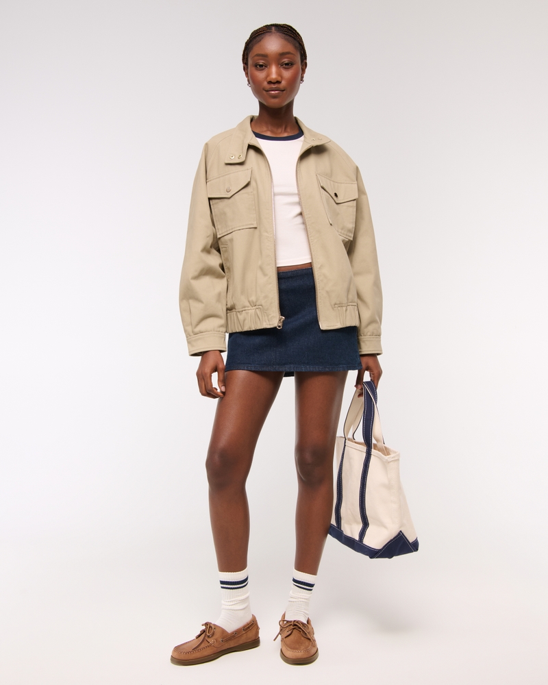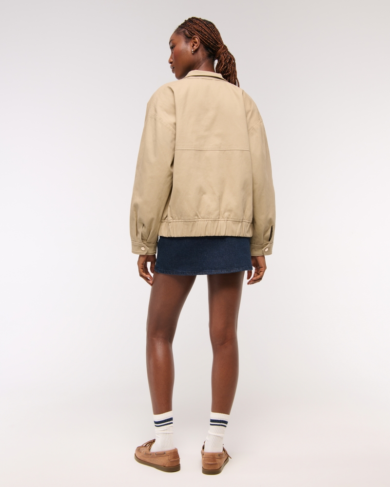 Our new bomber jacket in our comfortable twill fabric and easy fit, featuring a relaxed-fit silhouette, zip-up front, side entry pockets, chest pockets and snap details at the neckline. Imported.