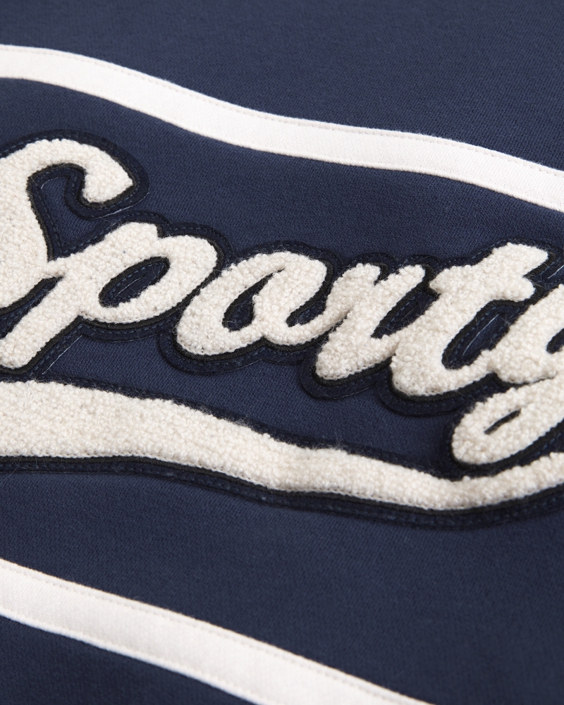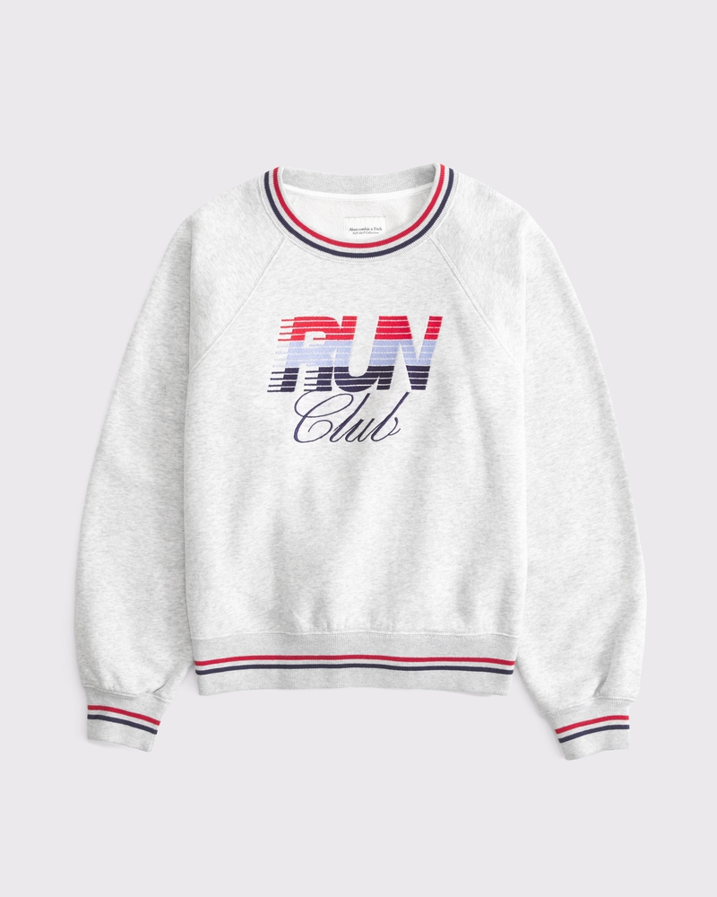 Comfy sweatshirt in our Soft A&F MAX midweight fabric and legging-friendly length, featuring a relaxed chest width, sporty graphic detail at chest, crew neckline and banded hem and cuffs. Imported.