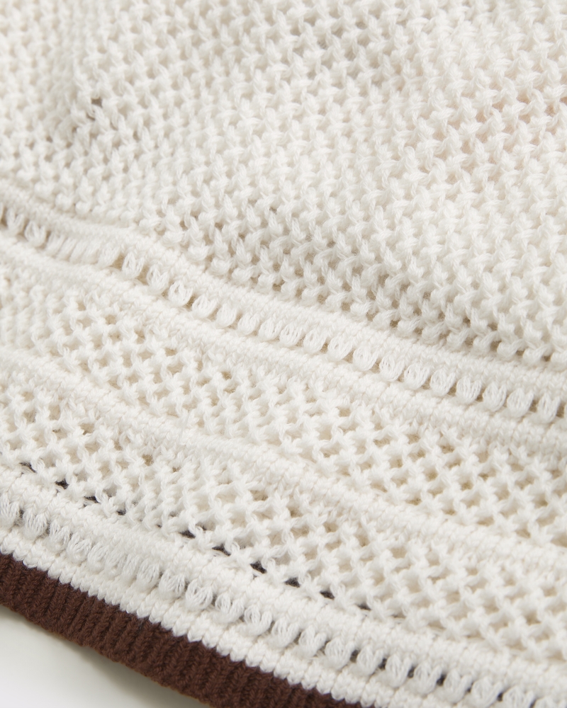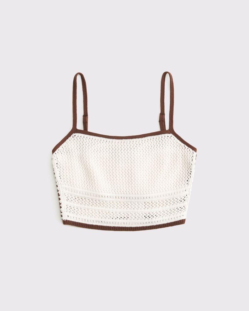 Slim-fitting bra top in our soft 100% cotton sweater yarn fabric with a knit lining, featuring a square neckline, contrast tipping details and crochet-style stitching details throughout. Pairs perfect with the matching crochet-style maxi skirt!