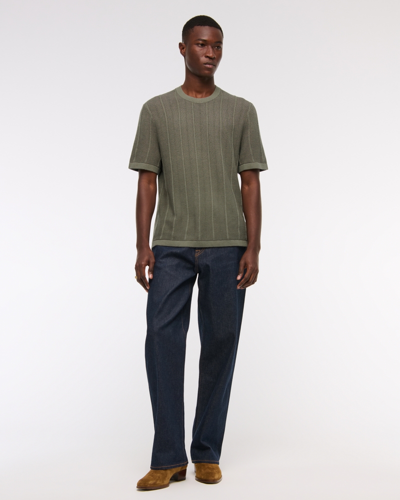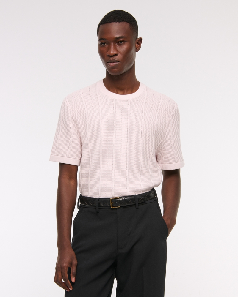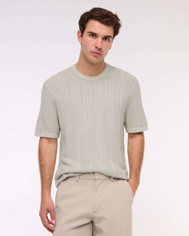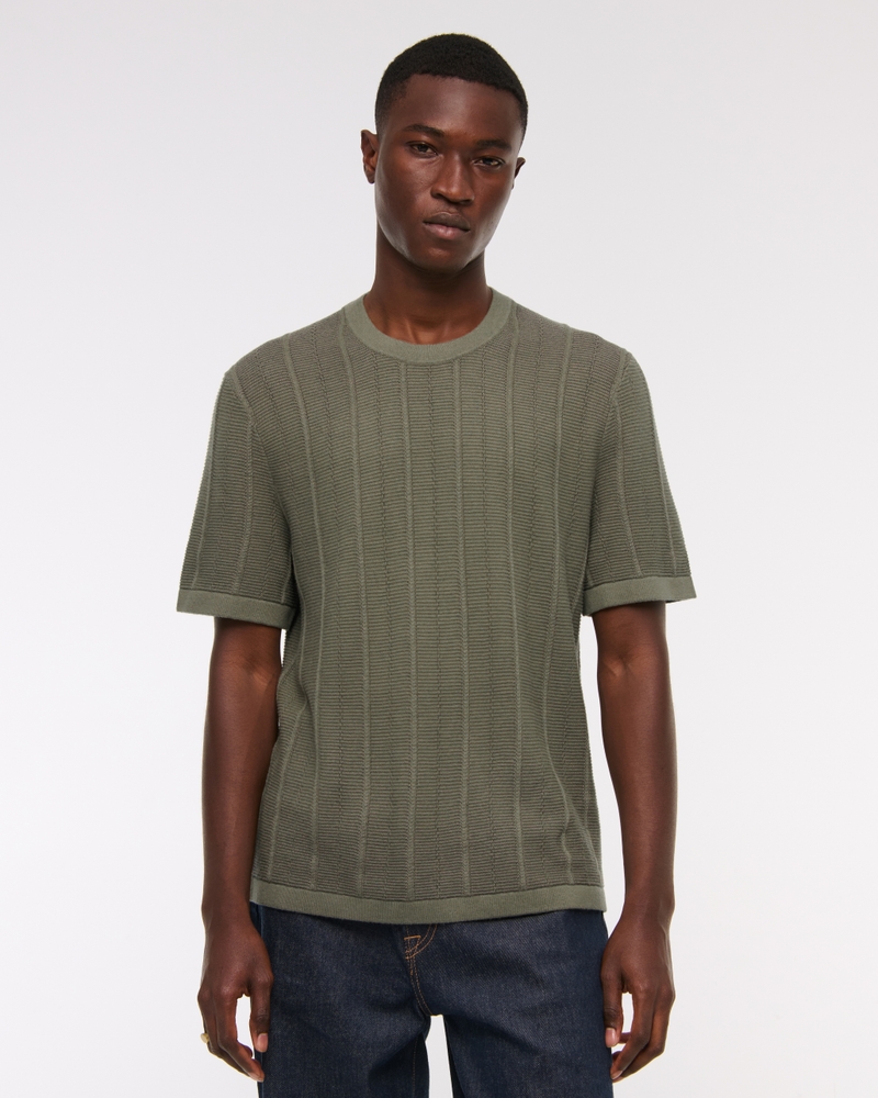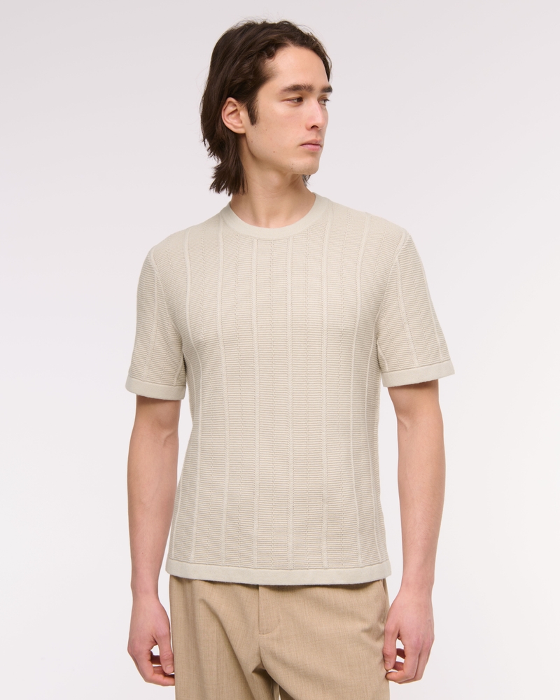 Easy-fitting short-sleeve tee in our soft sweater-knit fabric, featuring classic vertical stitching details throughout, crew neckline and banded hem and cuffs. Imported.