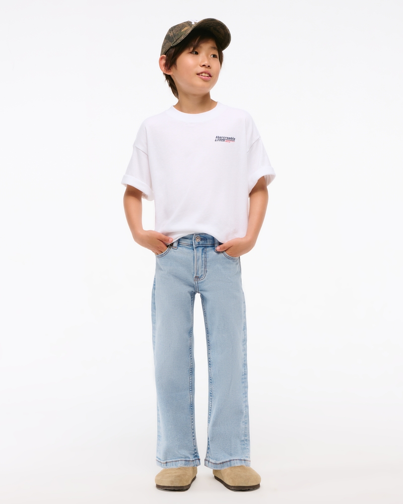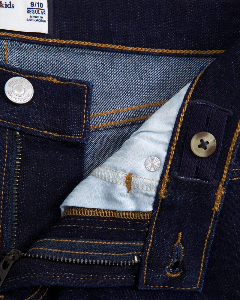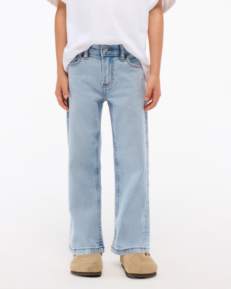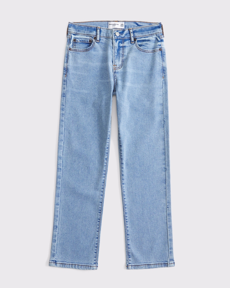 Easy-fitting jeans in a straight fit and our ultimate stretch fabric, styled with 5-pocket construction and waistband adjusters in all sizes. Medium wash. Sizes 5/6 and 7/8 have snap-front closures and sizes 9/10 and up have button-front closure. Imported.