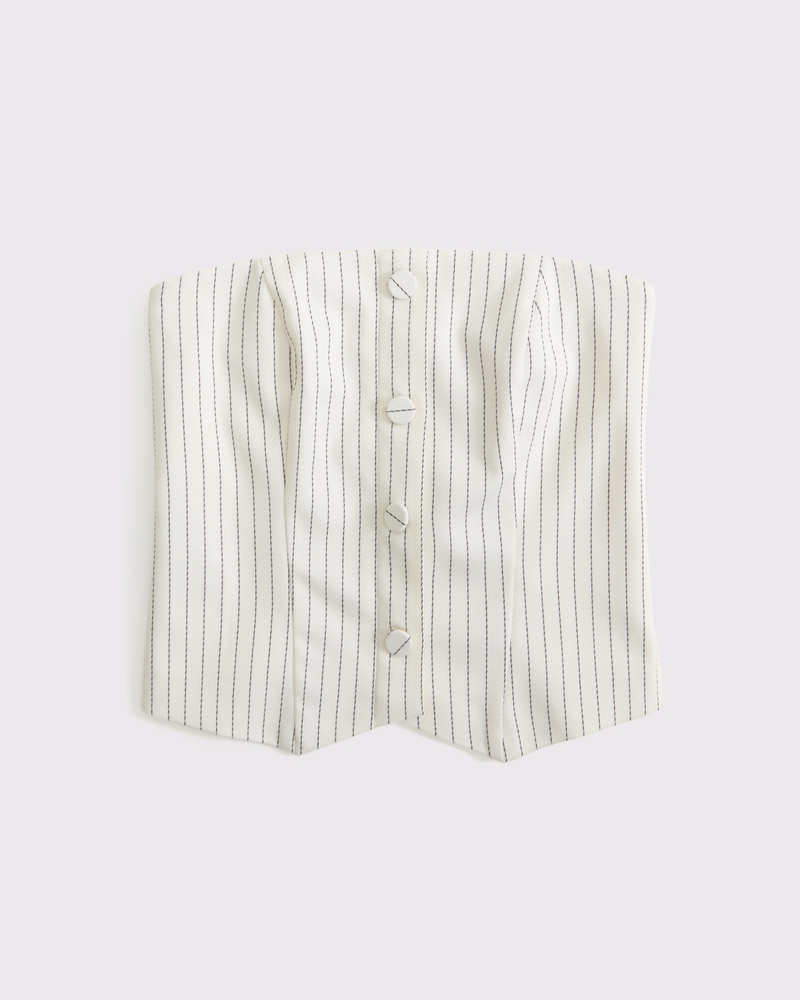 Flattering strapless vest in our midweight suiting fabric and tailored fit, featuring a cropped length, button-through detail and on-trend seaming details. Imported.