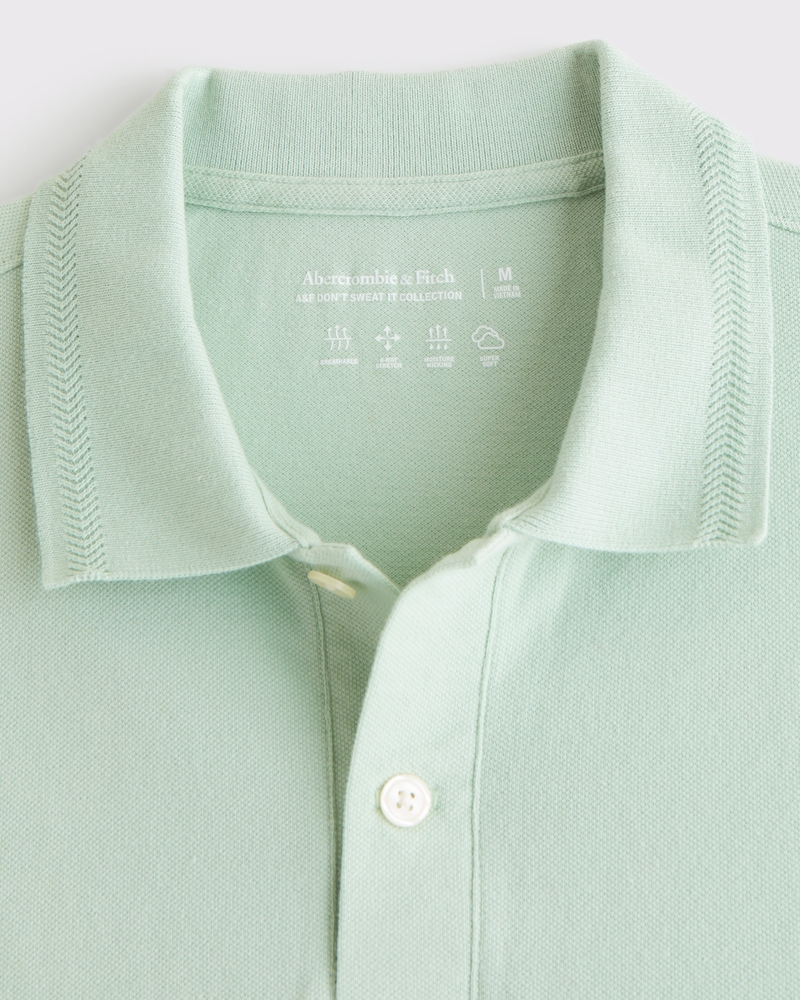 Our short-sleeve polo with 4-way stretch and moisture-wicking properties to keep you cool throughout the day. Features a three-button placket, classic collar, straight hem and a solid textured icon at left chest. Imported.