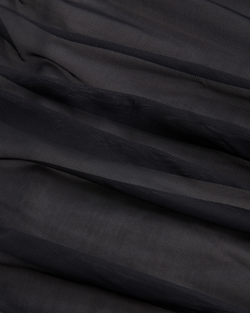 Slim-fitting top in our flocked mesh fabric and cropped length, featuring ruching details along the bodice and portrait neckline. Imported.