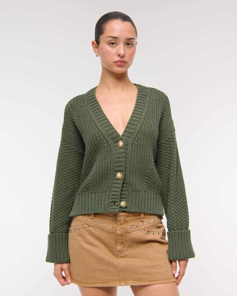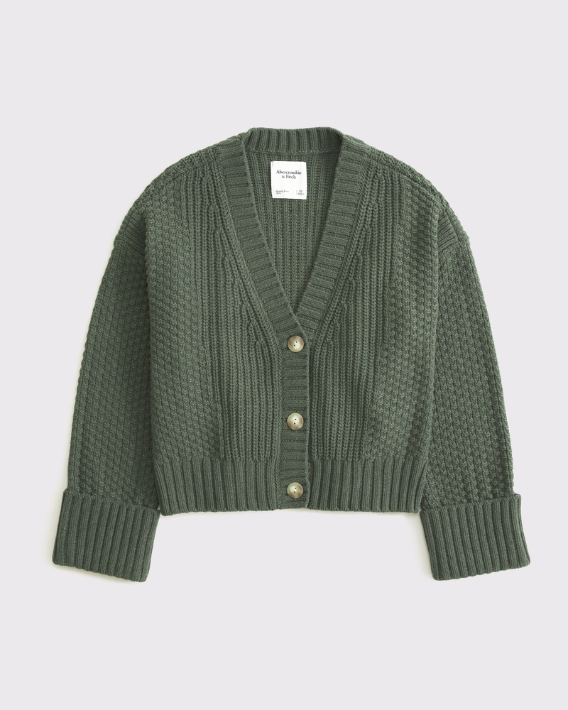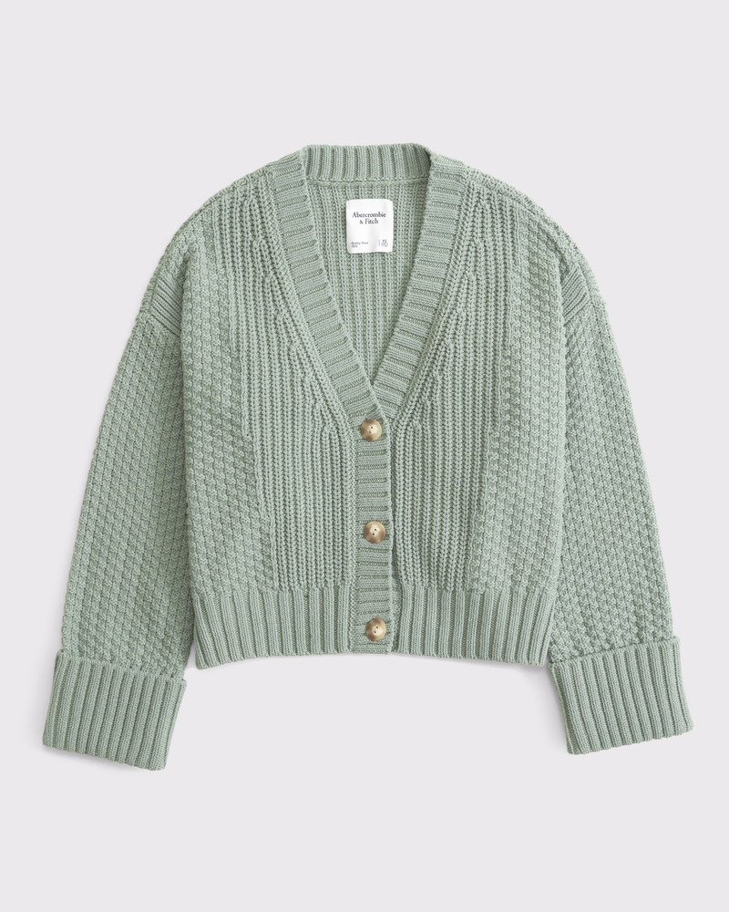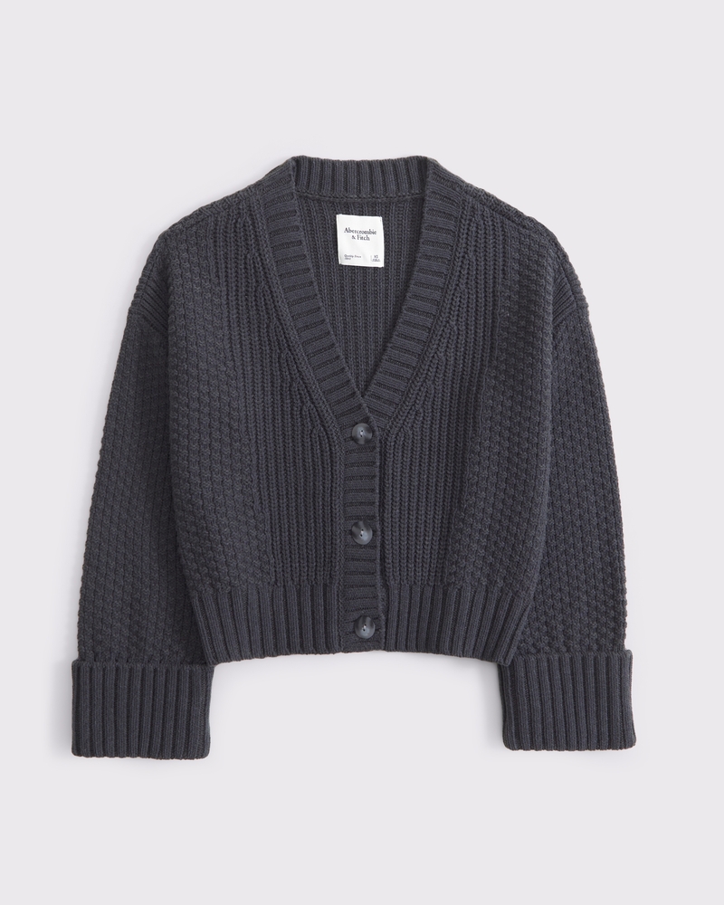 Easy-fitting short cardigan in our soft sweater-knit fabric, with textural seed stitching details, button-up front and rib trims with a turn-back cuff. Pairs perfect with your favorite pair of jeans! Imported.