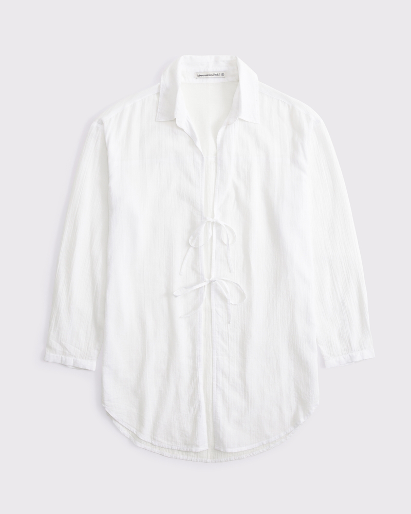 Our new shirt dress swim coverup in our light and soft gauzy fabric, featuring tie details at the front. Imported.