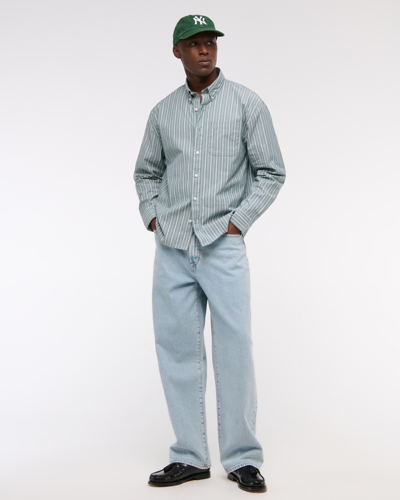 Our new ultra baggy fit jeans that sit slightly lower on the hip, and are our baggiest fit through the leg, in our 100% cotton no-stretch fabric and broken-in denim feel. Features a grey wash and clean hem. Imported.