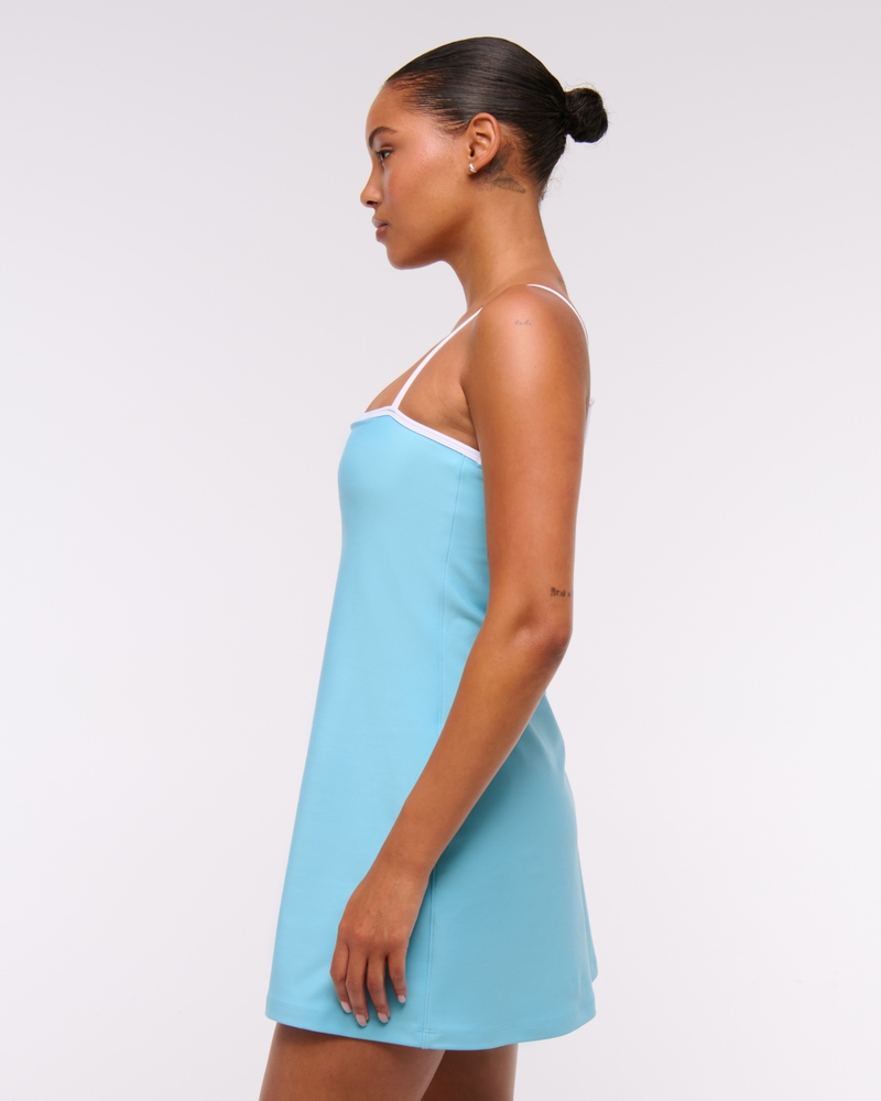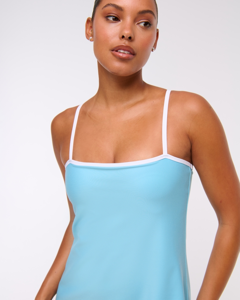 Our new active mini dress in our sculptLUX fabric with a bandeau-style neckline. Designed to hold you in, our sculptLUX fabric is compressive and supportive without being restrictive, as well as smoothing and sculpting without pinching. Features our new bathroom-friendly liner with hidden side pockets, adjustable straps and removable pads. Features shorts with a new pull-down feature designed to make all-day wear easier than ever. Imported.